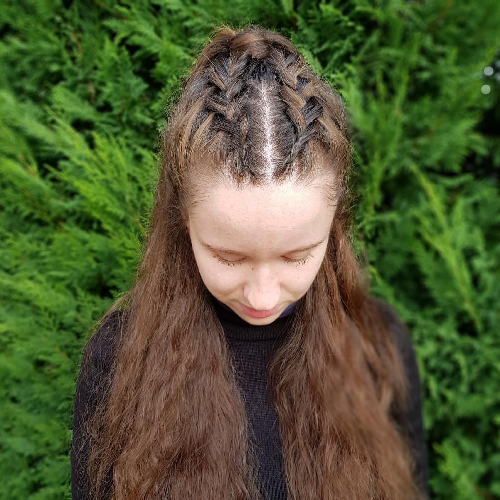 Center-Part Braided Pigtails with Defined Edges