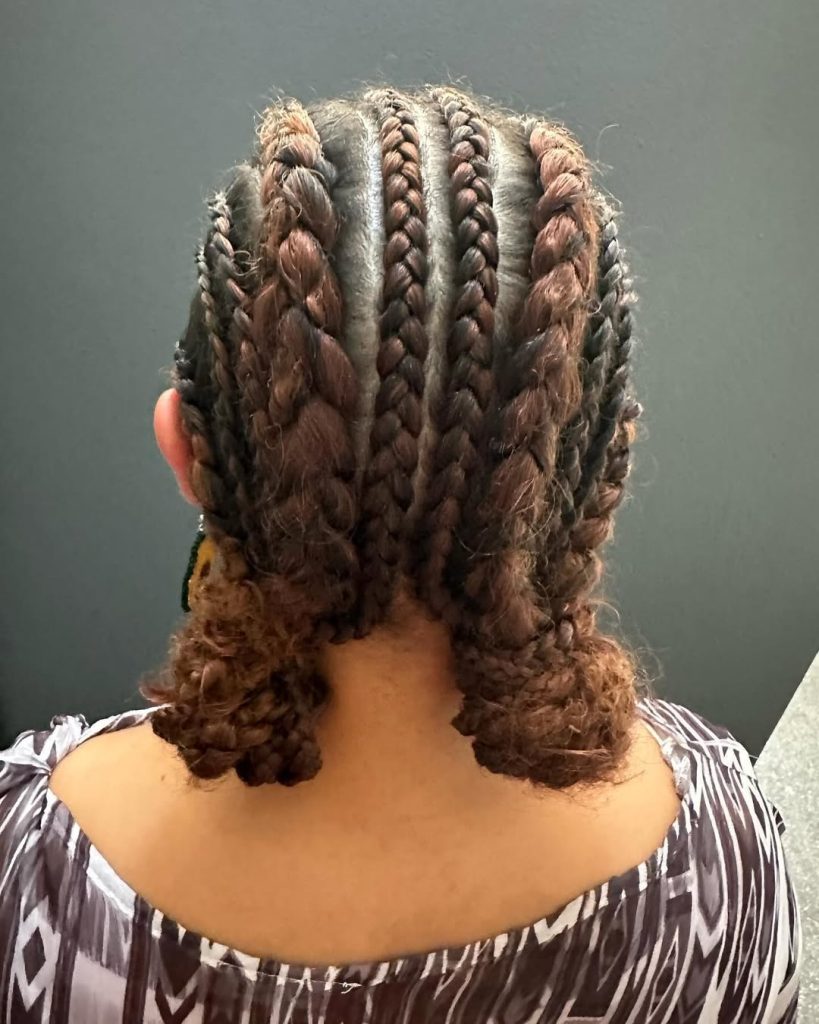 Cornrow-inspired braids continue to dominate hairstyle conversations, especially for Black women seeking protective, low-maintenance options. This style showcases clean parting and precise braiding of hair, paired with softly textured ends for a modern finish.