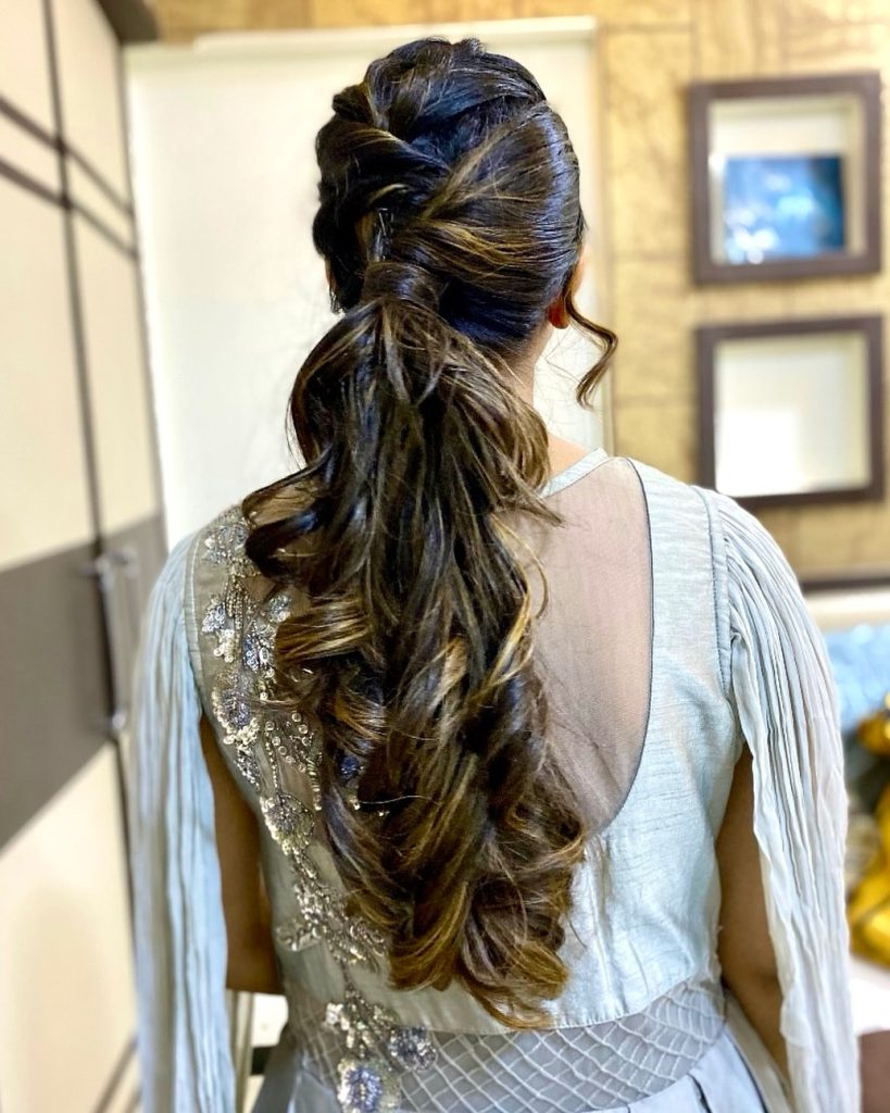 This low ponytail is all about understated elegance. Soft twists at the crown add volume, while the ponytail itself keeps a gentle wave that feels intentional, not stiff. It’s the kind of hairstyle that looks far more complex than it actually is.