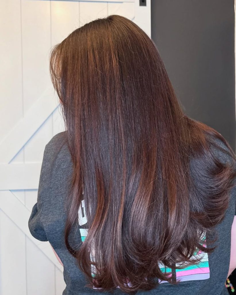 Salon note: a high-shine toner/gloss is non-negotiable here. If you’re doing a dye refresh, ask for chestnut depth with a reflective finish so it doesn’t drift into dull brown.