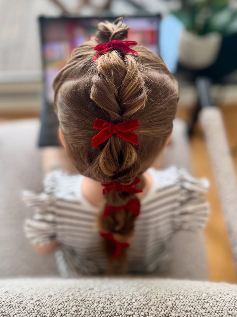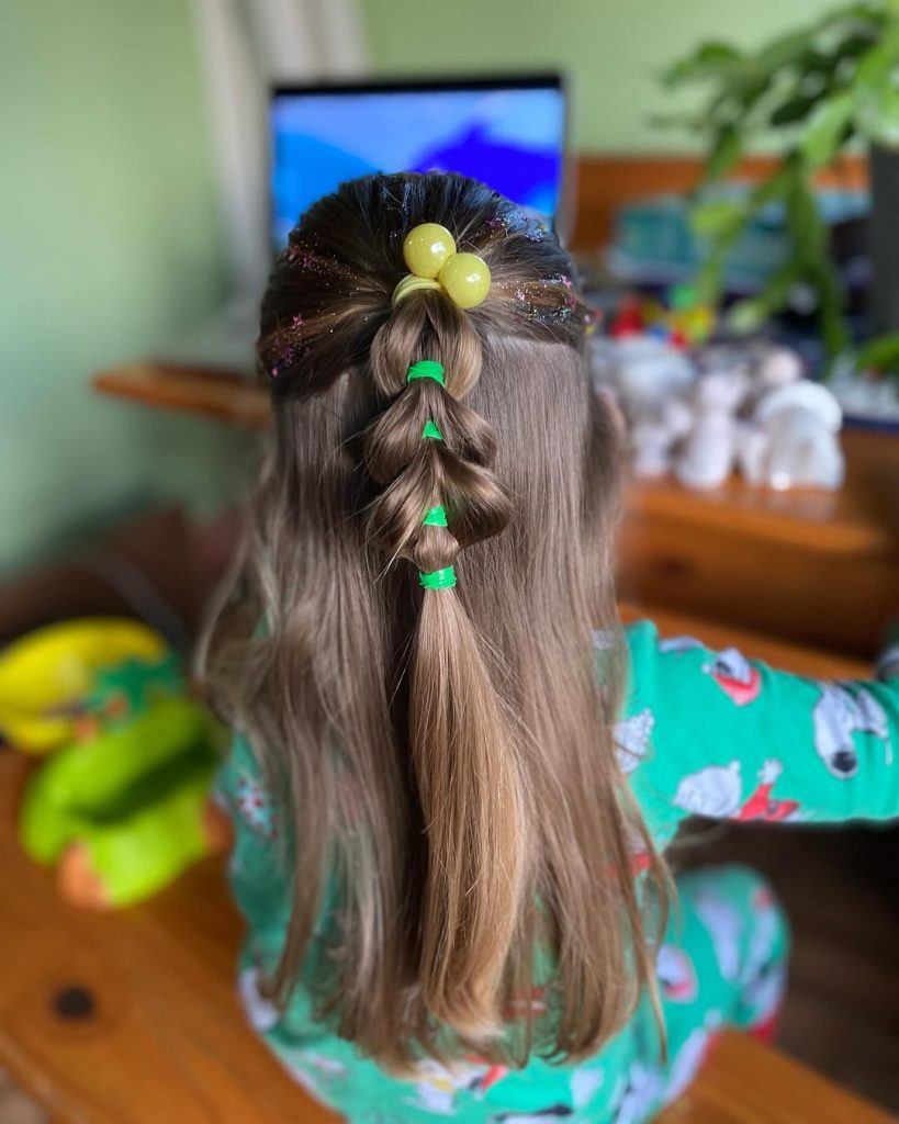 Whether you’re aiming for Simple elegance, Fun textures, or something more statement-making with ribbons, glitter, or braids, these ideas highlight the joy of the season while keeping hair practical and kid-friendly. With a few elastics, some bows, and a touch of creativity, you can create unforgettable holiday memories—one hairstyle at a time.
