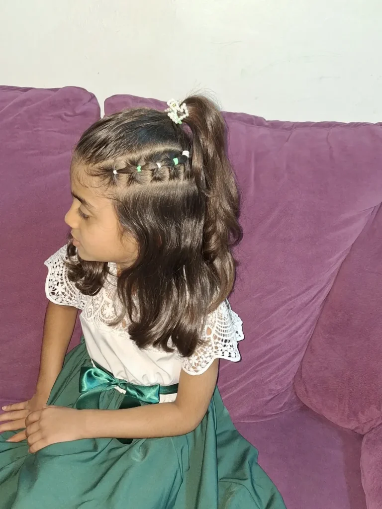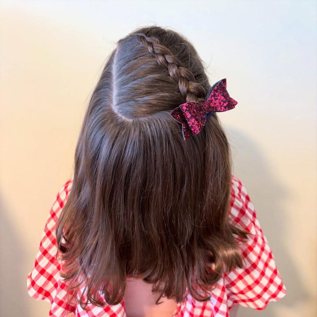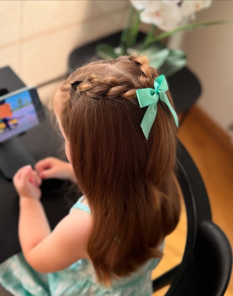 - If your child has Short hair, keep the braids slimmer and secure the tails with mini elastics before adding ribbons.