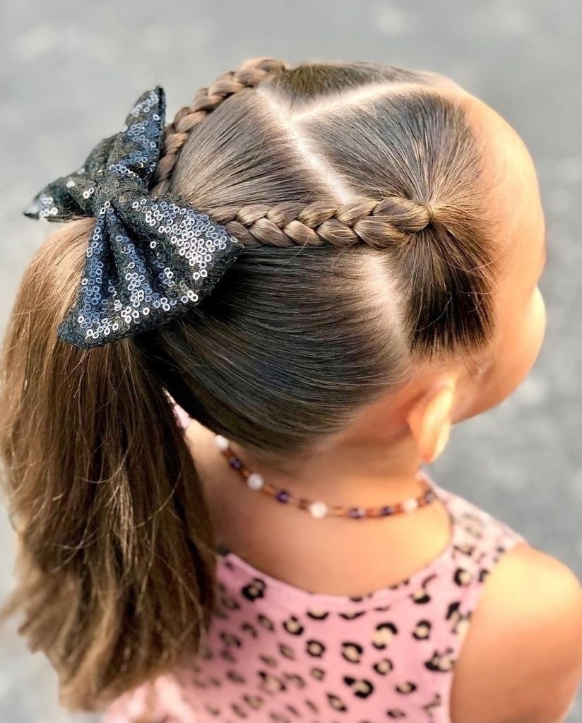 Sleek Side Pony with Crown Braid and Sequin Bow (party-to-playground)