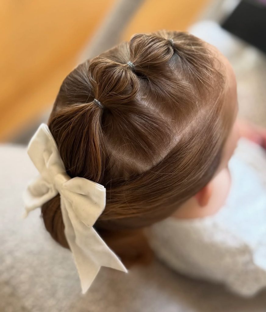 Heart-Bow Space Buns with Face-Framing Curls (playroom to party)