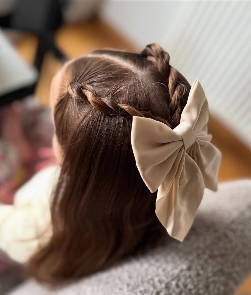 Soft Rope-Crown Half-Up with Oversized Neutral Bow