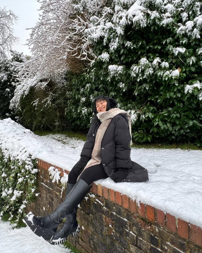 Head-to-toe pink outerwear with bold snow boots creates a playful Baddie moment, proving extreme cold doesn’t mean boring style.