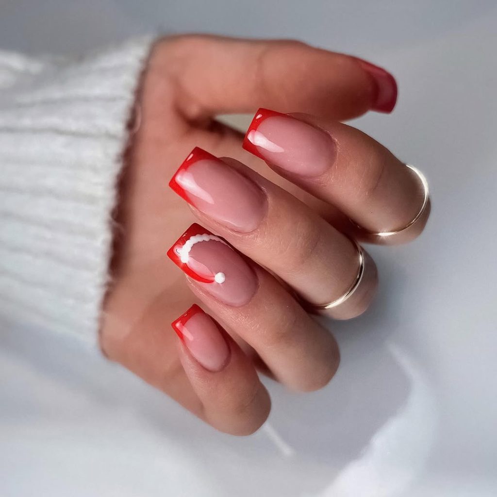 1) Classic Scarlet French With Gentle Candy-Cane Touch