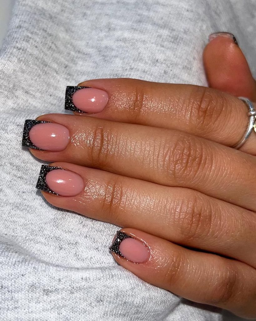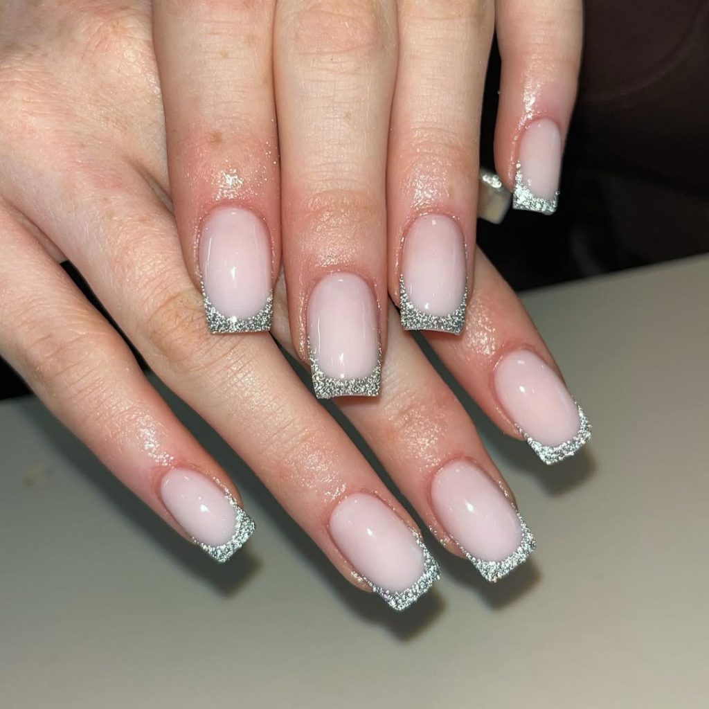 3) Silver Glitter French On Clean Squares