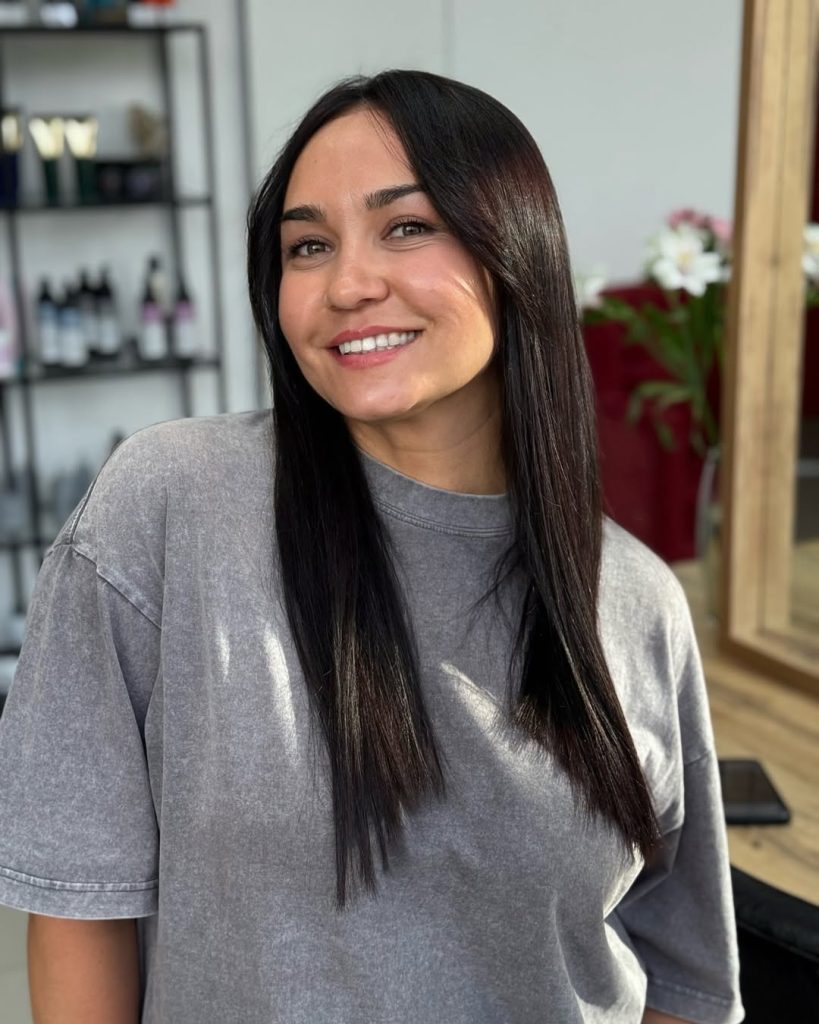 This long, straight hairstyle demonstrates how simplicity can be powerful when executed correctly. The face-framing pieces begin below the jawline, ensuring the hair doesn’t cling to the cheeks. The result is a sleek, elongating effect that flatters round features beautifully.