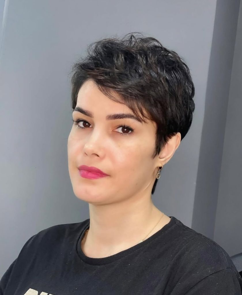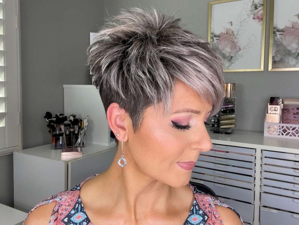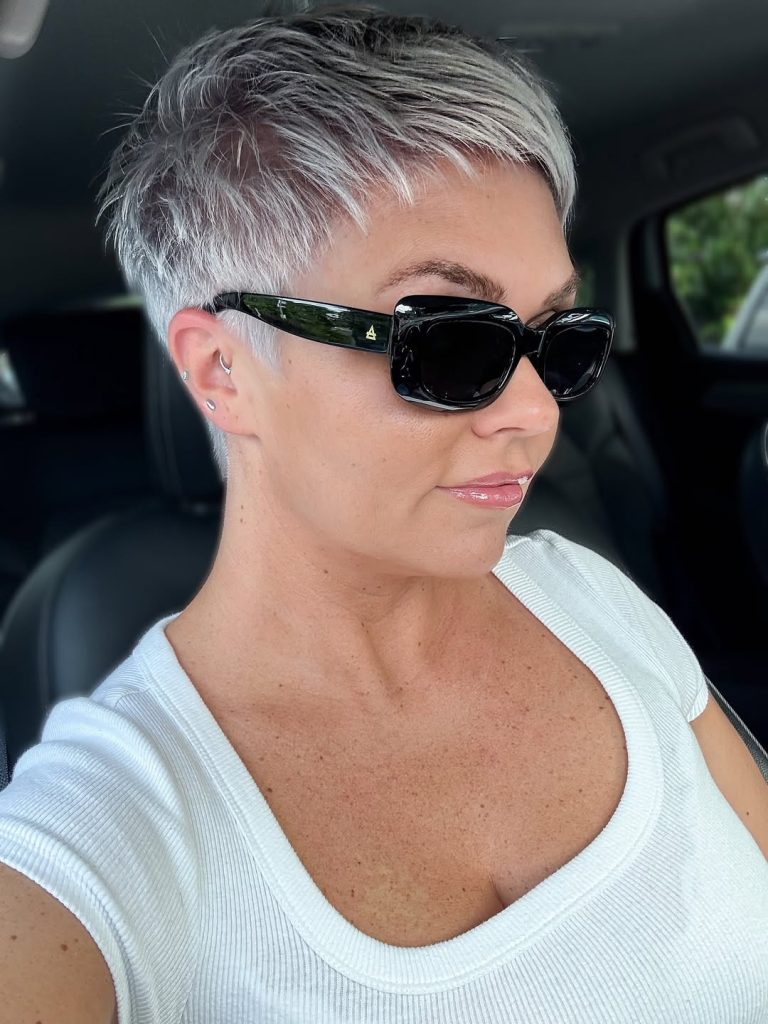 A cropped silhouette with a frosty blend on top and tighter, smoke-dark sides. Micro-layers through the crown create lift without bulk, so it’s fantastic for thin hair and friendly to naturally Straight textures. Work a rice-grain of matte paste between fingertips and pinch upward to keep the airy peaks. Sunglasses, a glossy lip, and this pixie read confidently modern for American women who want styles that move from carpool to cocktails with zero fuss—very easy for women and undeniably cute in 2026.