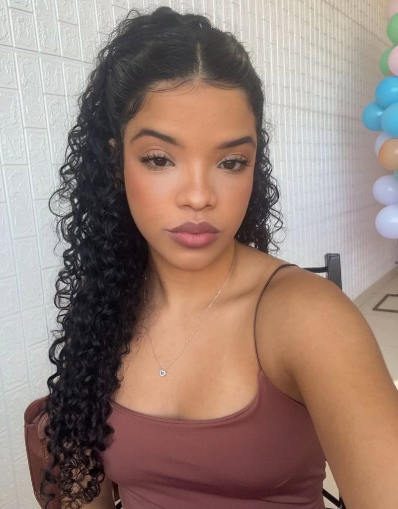 The sleek roots flow into a segmented bubble pony that preserves curl texture without pulling. The silhouette is sculptural yet wearable—perfect for a gallery night or work event when you want polish with personality. Keep the edges soft and let one defined coil frame the cheekbone for a subtle, elegant finish.