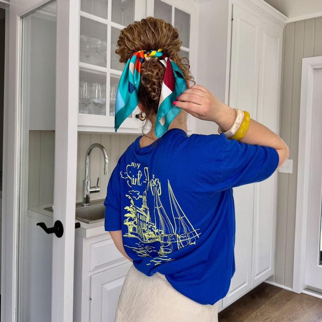 A colorful silk scarf turns a relaxed curly bun into a mood. Tie the scarf under the bun, let the tails trail, and keep the base soft for scalp comfort—this is a low-stakes, high-impact updo that works for errands or patio dinners. I like it on day-two curls with a few face spirals pulled free; it’s effortless, breezy, and very weekend-chic.