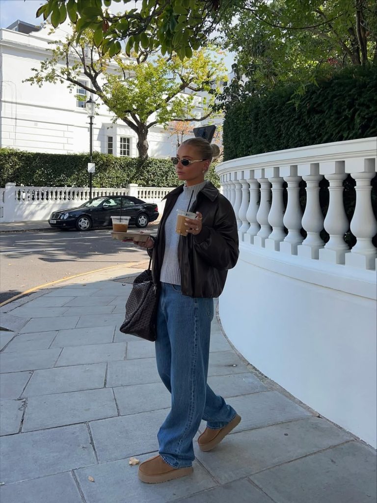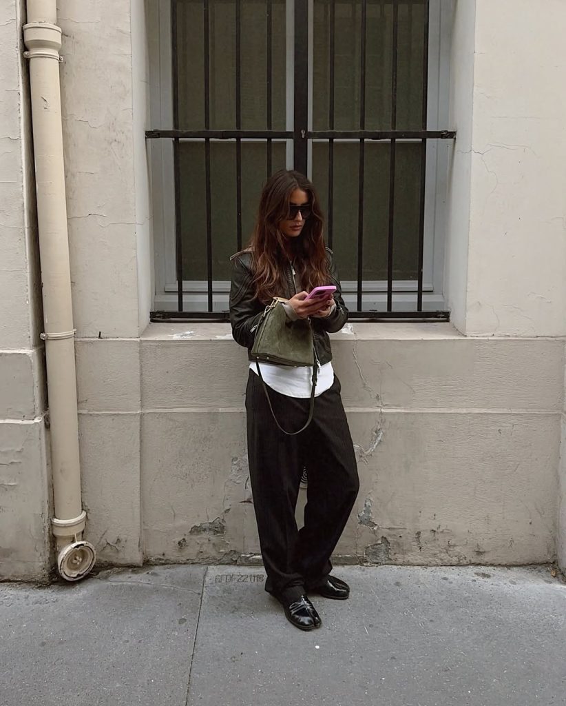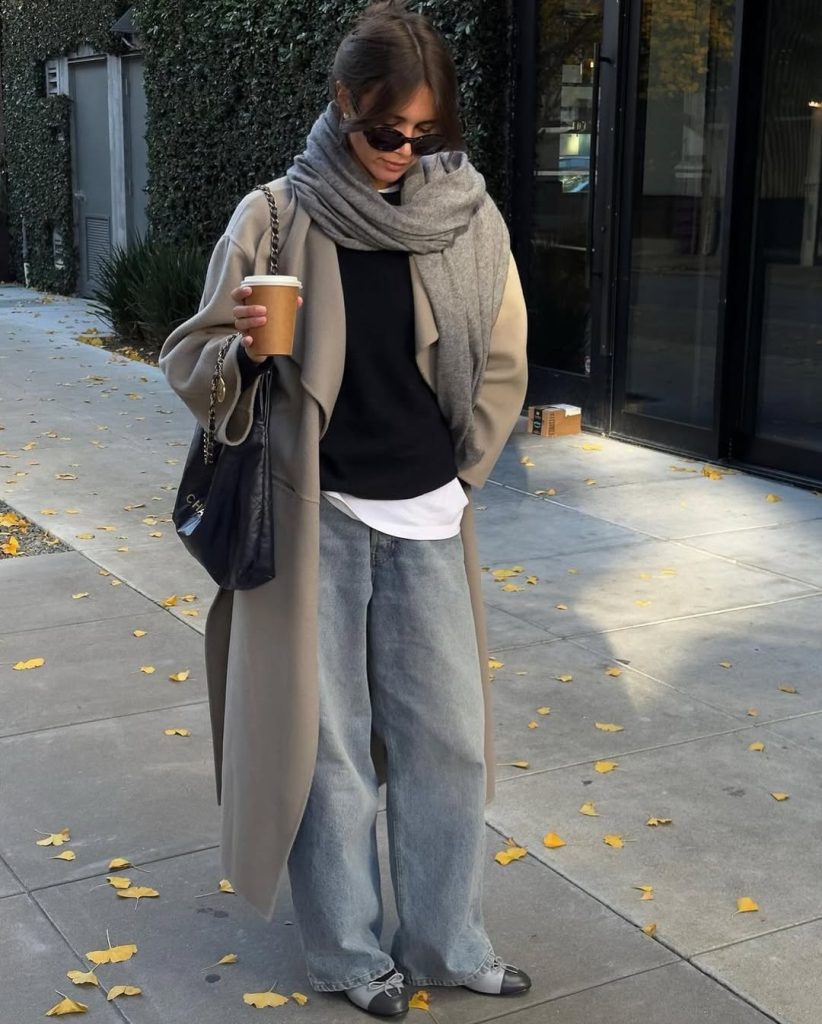 This is a simple go-to look for coffee dates, work drop-offs to afternoons, or taking a stroll to school on a chilly day. The textures play nicely—leather, knit, denim, and suede. To personalize it, you could throw on a silk scarf tied to your tote bag or layer multiple necklaces above your sweater. I wouldn’t wear extremely bright coats or heels to complete this look, though—those textures and tones would completely clash with the relaxed, earthy vibe this look embodies to make it such a versatile wardrobe staple come 2026.