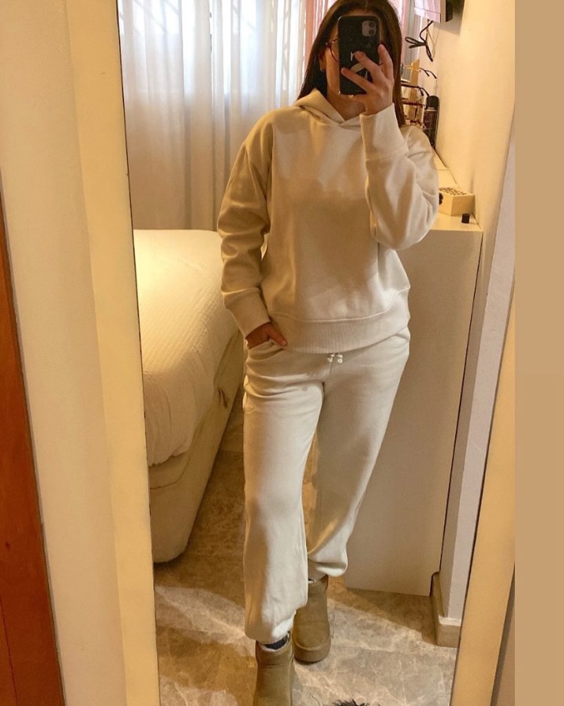 This is the kind of set you reach for when the leaves change and the air gets crisp. It’s made for pumpkin-patch dates, scenic drives, or simply staying home with a movie marathon. Elevate it a bit with structured sneakers and a quilted vest if you’re heading to school or running errands. To keep the look intentional rather than sloppy, avoid mixing in random bright colors; staying within a warm neutral palette keeps everything cohesive and stylish.