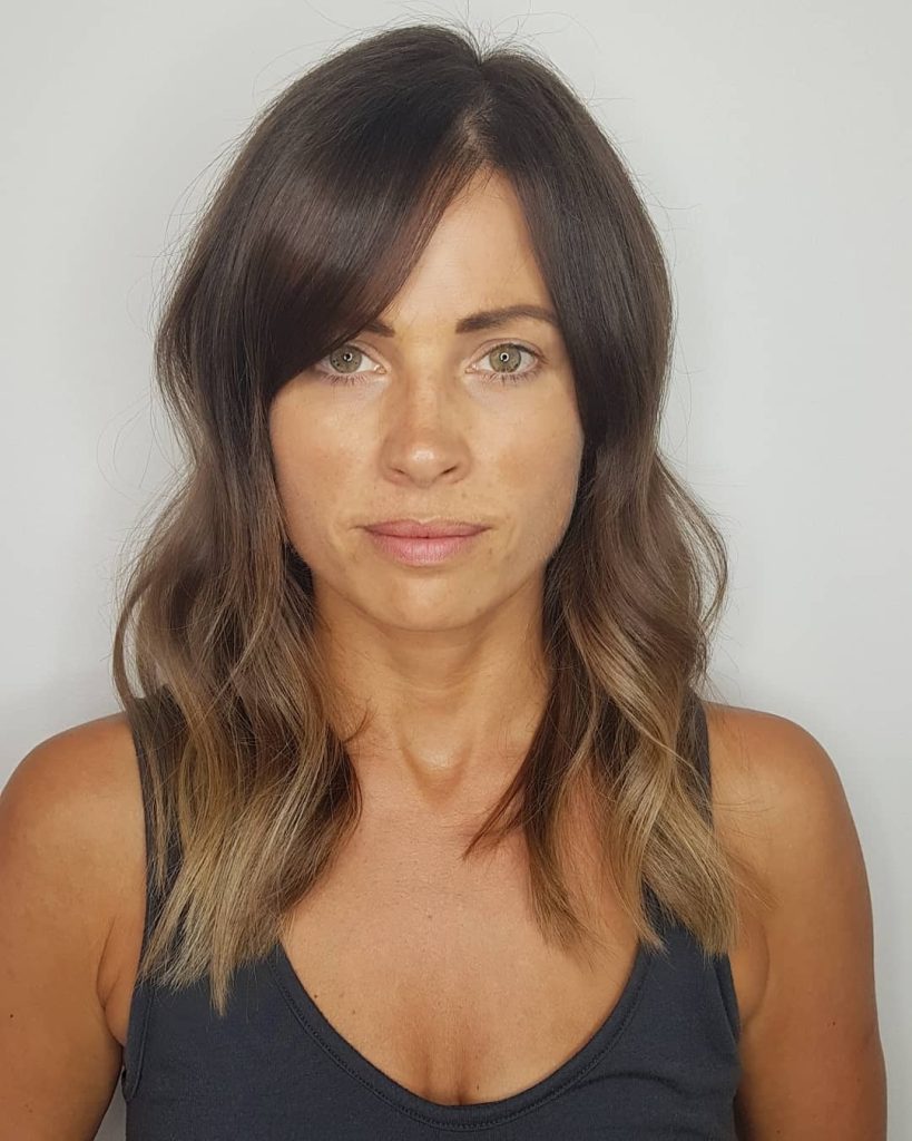 This is one of the most flattering medium-length cuts for fine hair right now: waves that start low (so the roots don’t collapse) and a light, wispy fringe that reads modern, not heavy. The fringe counts as bangs, but the texture keeps it breathable—ideal if you’ve tried blunt bangs before and felt like your hair suddenly had a mind of its own.