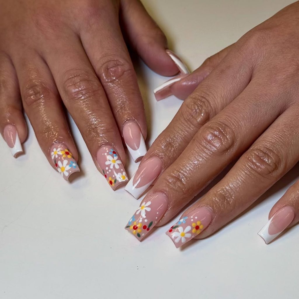 Florals return every spring, but 2026 versions feel cleaner and more intentional. Here, crisp white French tips ground playful daisy accents, creating one of the most cute and wearable designs spring this season.