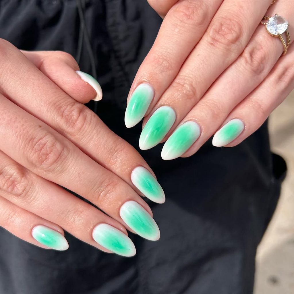 Mint Green Ombre Almond Nails
