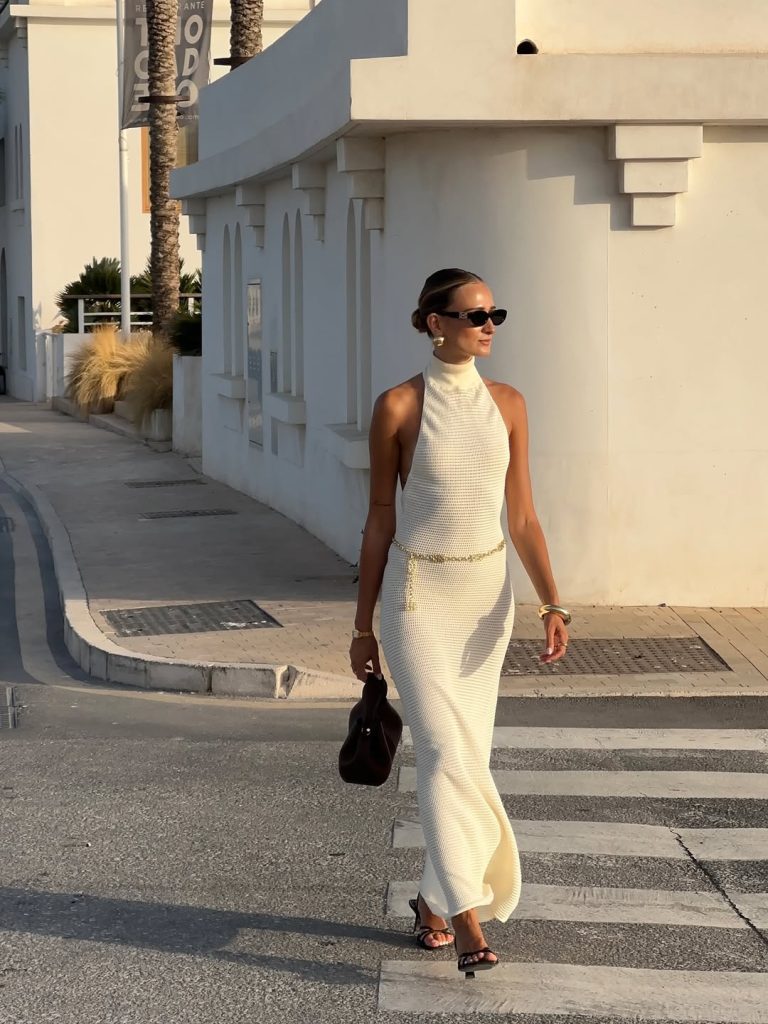 File this under “instant confidence” dresses. Ideal for warm summer nights on rooftop terraces or garden parties where you want to stand out without effort. Add a small metallic clutch and glossy lip; if it gets breezy, a cropped white cardigan keeps proportions in check. I’d skip heavy jackets or opaque tights—they’d weigh down the light, sunlit feel of the look, while its charm lies in easy, casual glamour.