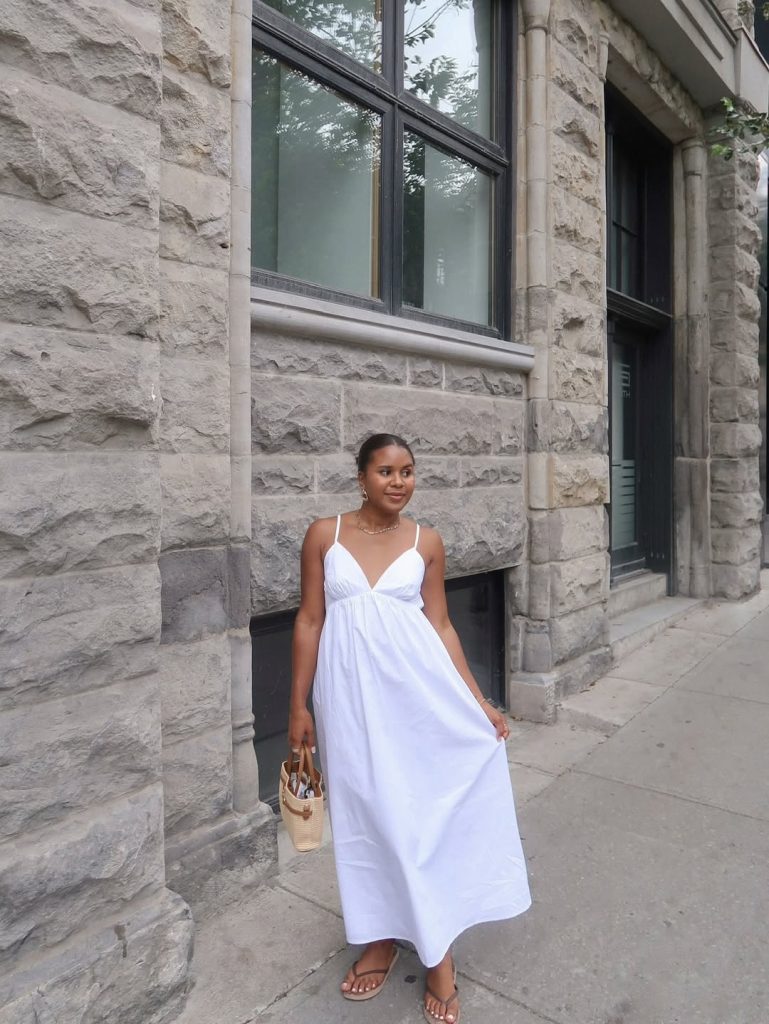 This is the sort of outfit you’d wear while exploring temples or old towns on a summer weekend. Add a scarf if you are going to more conservative sites, or layer it with a cropped denim jacket if the temperature drops in the evening. I’d steer clear of boots—the whole point is how flowy and easy the dress feels as it moves with every step.