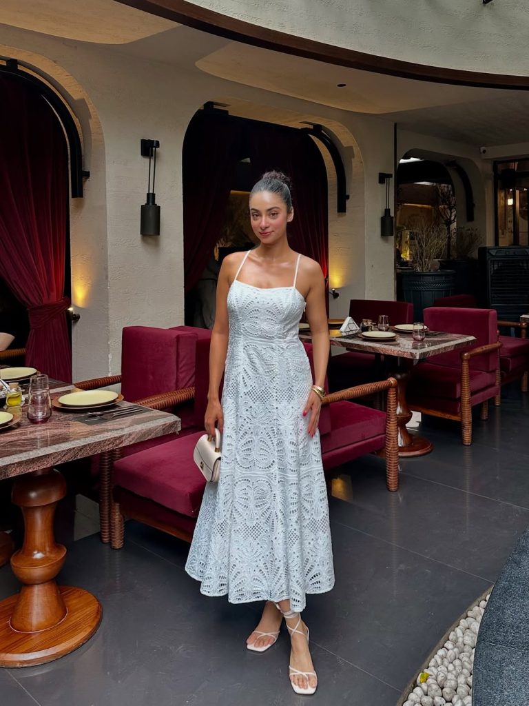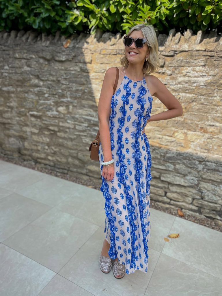 Think sunset dinners by the sea, outdoor concerts, or a date where you want to feel a little extra. Add a white cardigan for breezy nights or a tailored blazer if you’re heading somewhere smarter. I’d resist heavy boots or dark tights; keeping legs and shoes light preserves the dress’s joyful, almost retro charm.