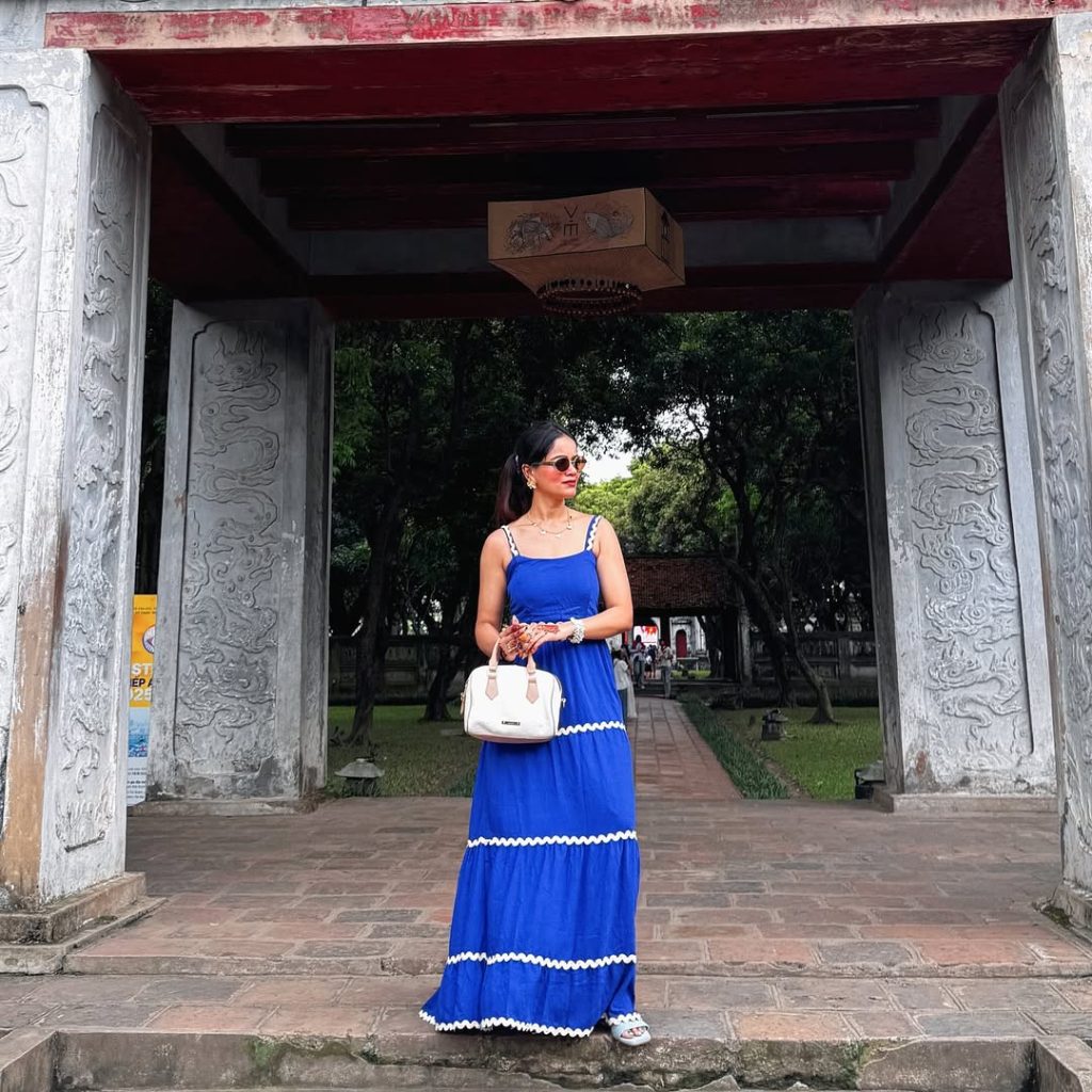 A vibrant blue tiered dress with ric-rac trim turns sightseeing into a style moment, striking that sweet spot between playful and polished casual.