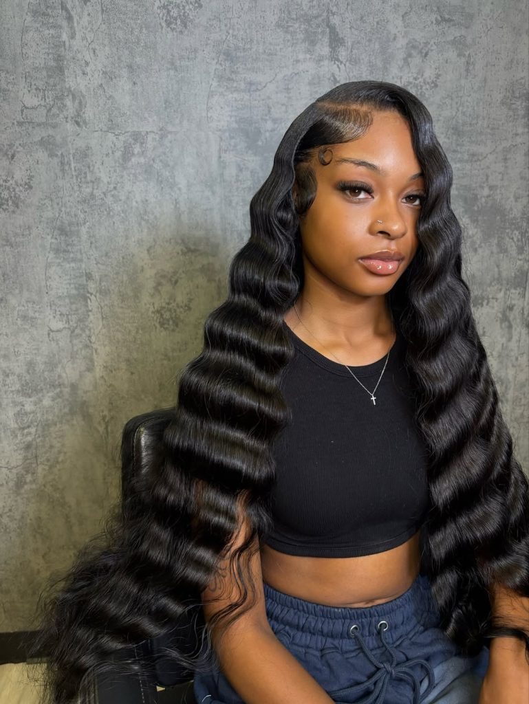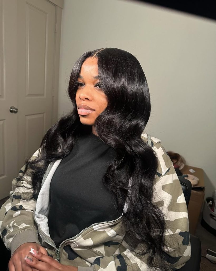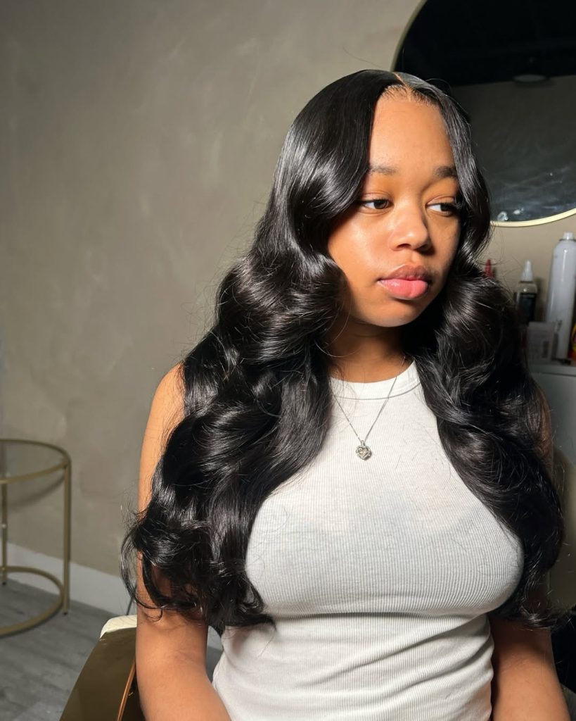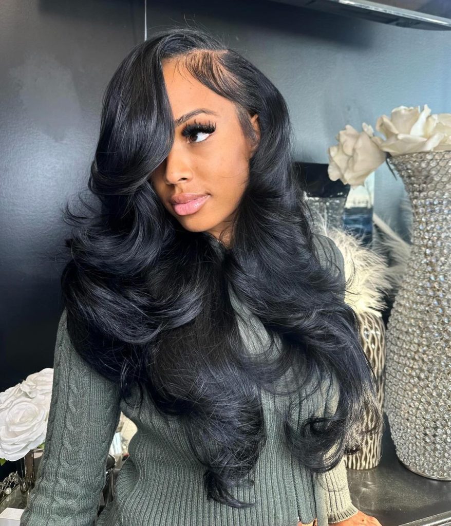 Long, cloud-soft waves tumble from a low side part with perfectly sculpted edges—a great “everyday glam” texture for women who want movement minus daily heat. If you’re protecting your leave-out, request a full-cap install (Pronto) so the hairline stays sleek through workouts and commutes. Refresh with water and leave-in and scrunch.