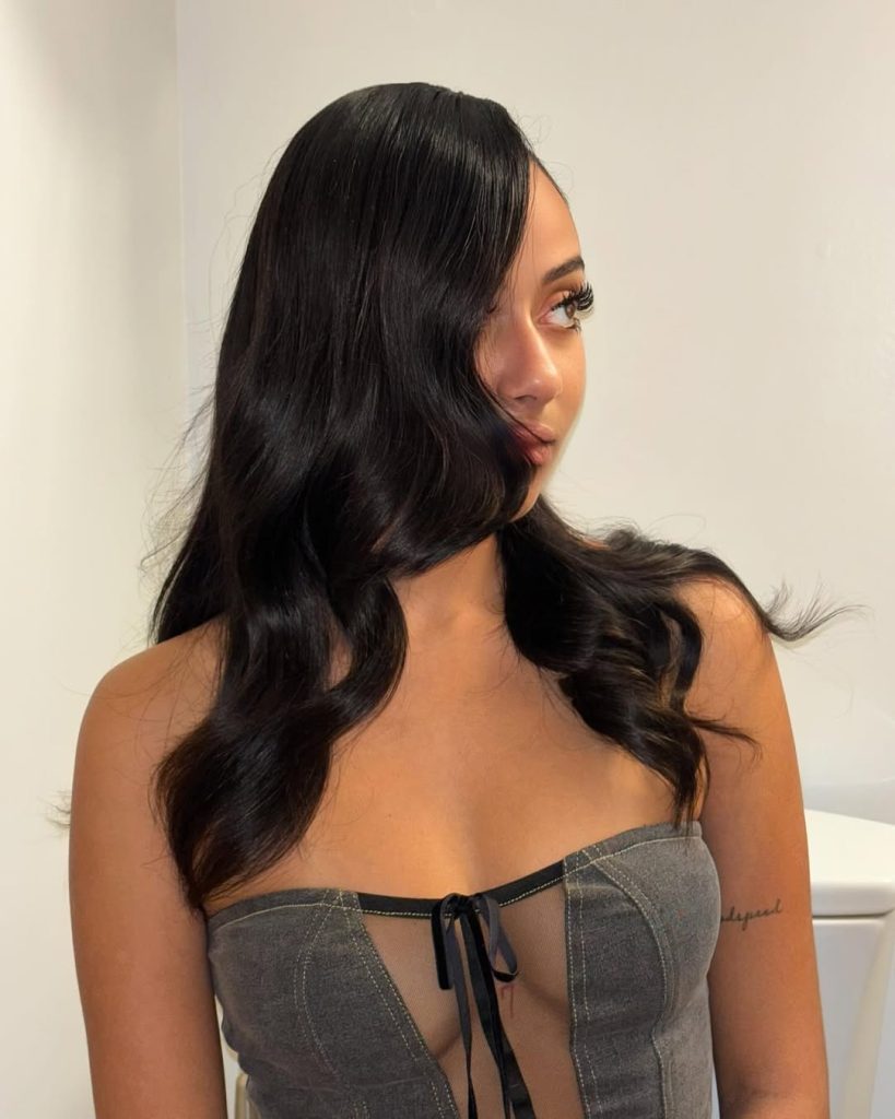 Waist-skimming deep waves are paired with a sleek mold and camera-ready edges. This is mermaid drama made wearable! You can also opt for staggered layering through the last third so the ends don’t look heavy in photos. For the gym, a low braid or ponytail preserves the pattern; unclip, then mist and gloss for a quick refresh.