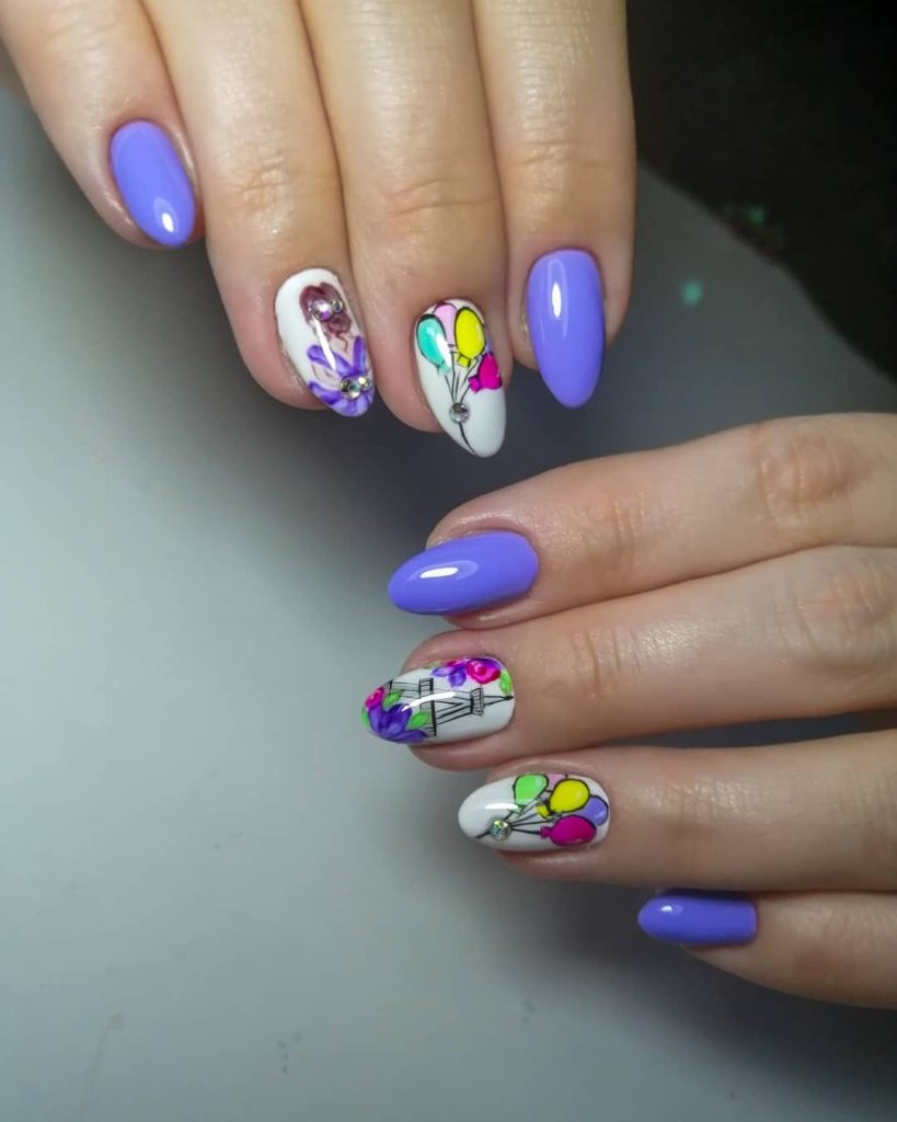 Lavender Nails With Floral And Balloon Details