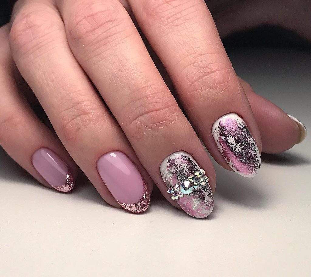 Soft Pink Glam With Foil And Crystals