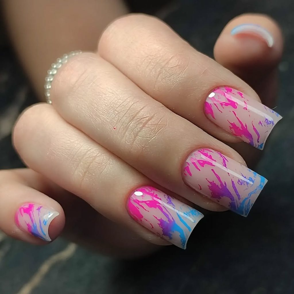 Abstract Paint-Splash Birthday Nails In Pink And Blue
