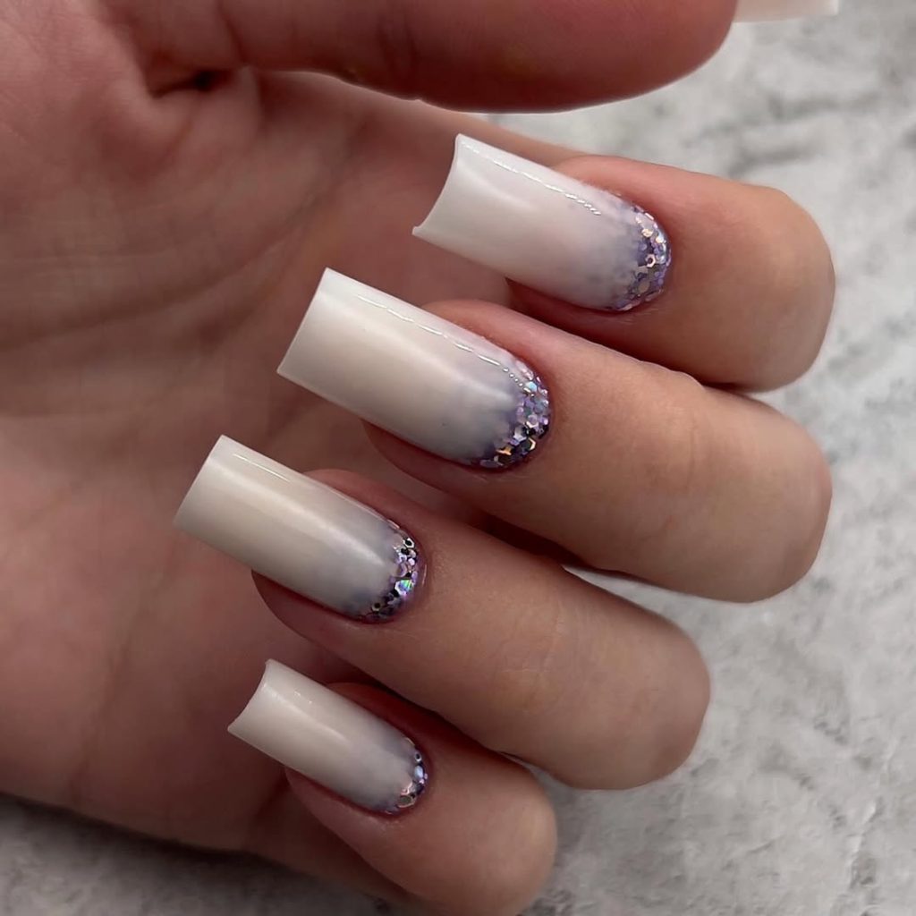 Milky White Nails With Subtle Crystal Fade