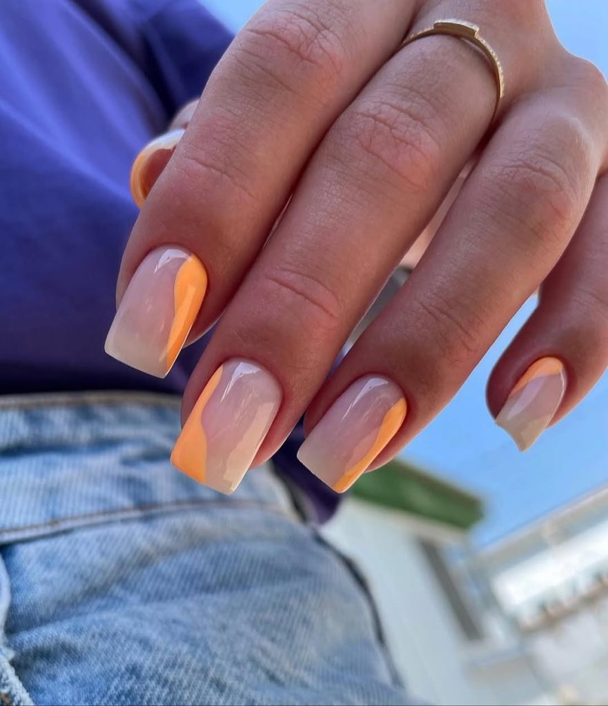 Nude Nails With Peach Accent Curves