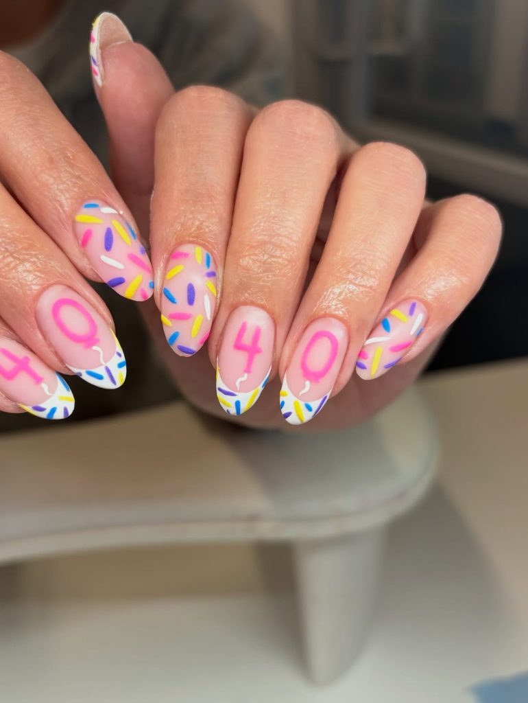Confetti Birthday Nails With Number Accent