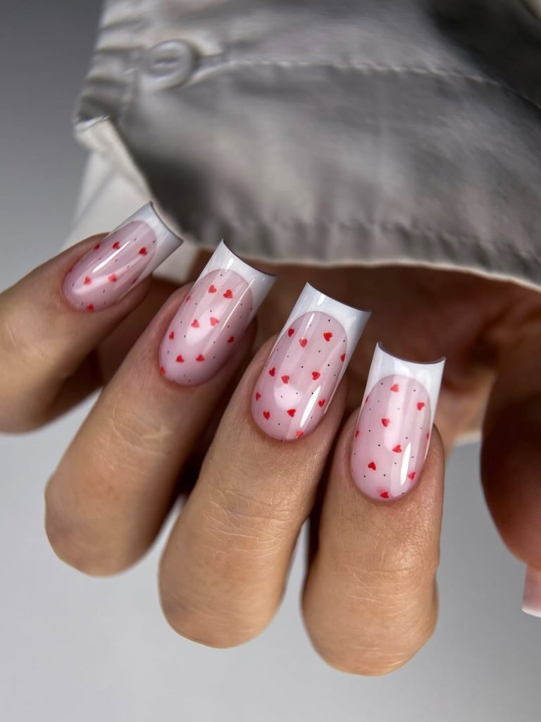 This manicure leans into romance and charm. A glossy baby pink base is sprinkled with tiny red heart details, creating a soft yet playful birthday look. The square shape keeps it modern, while the hearts add emotional warmth without overwhelming the design. Perfect for spring birthdays that feel intimate, joyful, and personal, this set works beautifully for both casual and dressed-up celebrations.