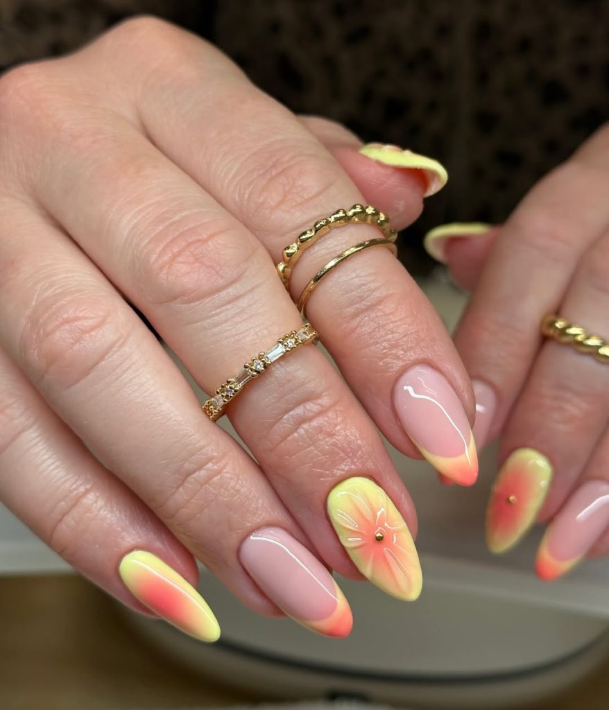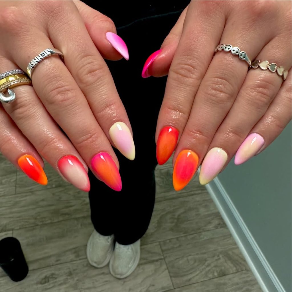 Sunset Sorbet Ombre Almond Nails