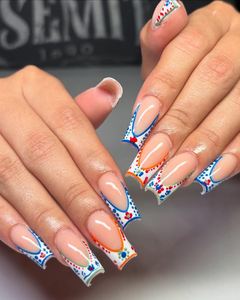 These designs are perfect for women who want to vacation in the Florida Keys (or simply dress as if they are) and pair beautifully with gold jewelry, a white linen dress, a coral bikini, or a sunset-colored maxi skirt. It’s not simple, but it’s the kind of fun manicure that becomes part of your vacation outfit—like statement earrings, but on your hands. This is major Inspo 2026 for anyone who wants playful, artistic nail art without going full cartoon.