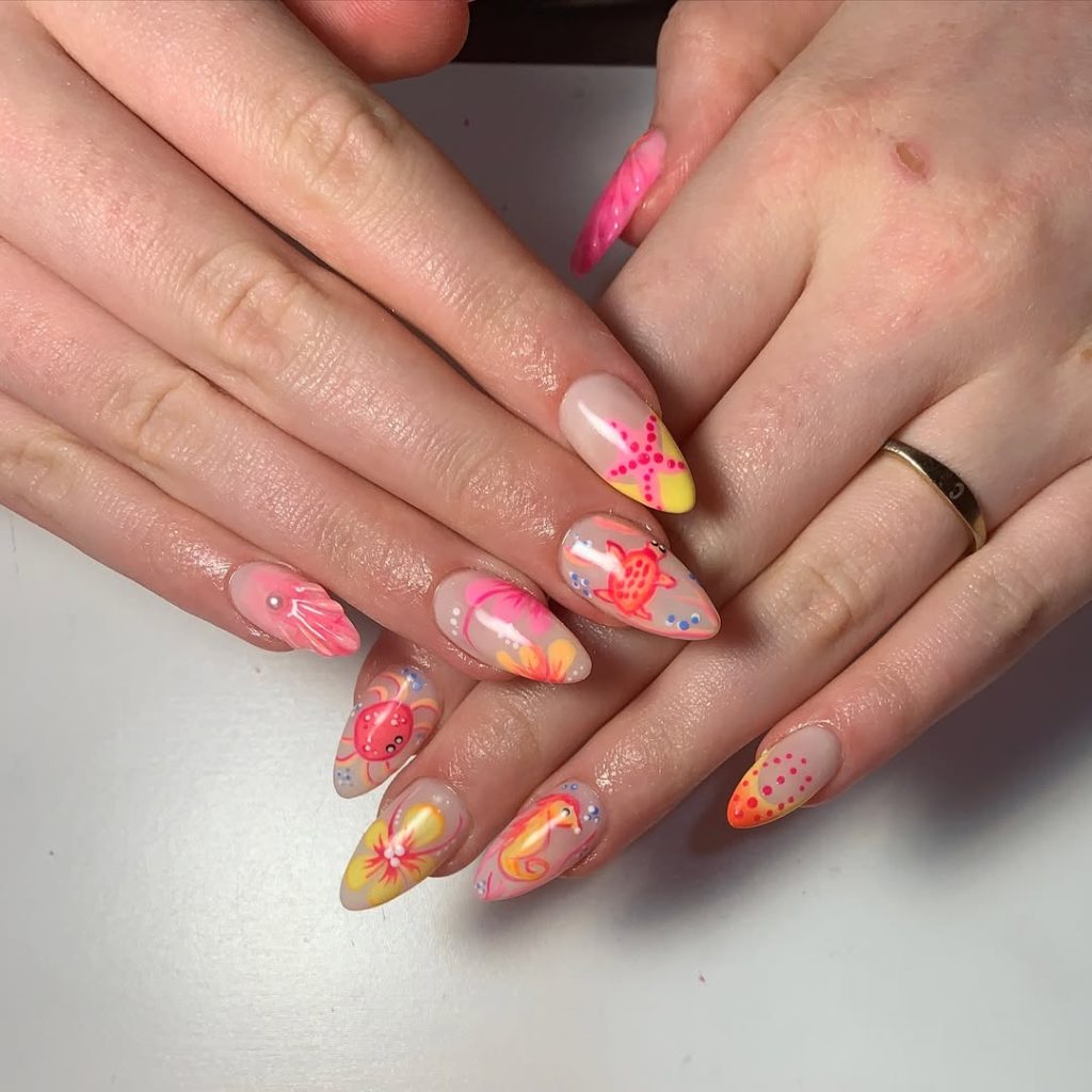 Pastel Beach Art Almond Nails
