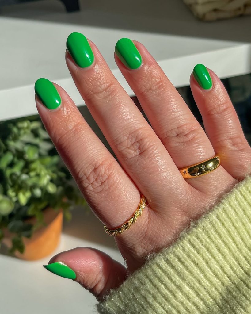 Solid, Bright Green Gel Nails