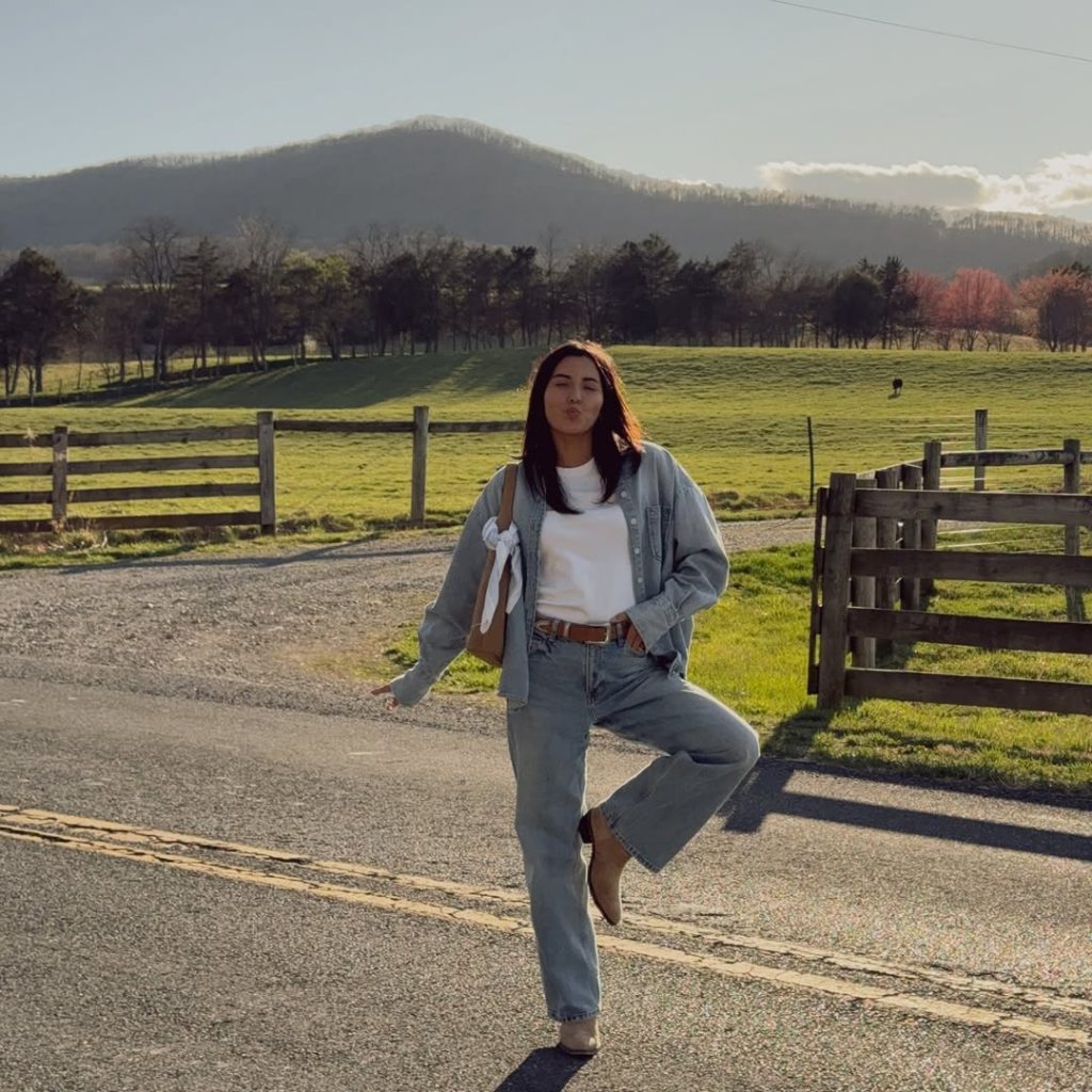 Light-wash denim layered over a crisp white tee creates a relaxed, sunlit look that feels like stopping at a roadside diner after a long drive. It’s effortless, casual, and exactly the kind of uniform many women reach for on soft spring or warm summer afternoons.