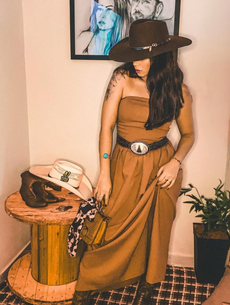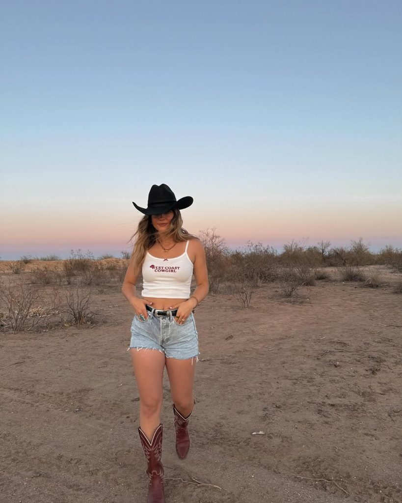 Here’s a cute and fun look, right as the sky is turning all pretty and pink, and the night is still full of fun and possibility. There’s the fun, flirty cowgirl look, blending perfectly with festival fashion, perfect for women who like their western fashion trends a little flirty.