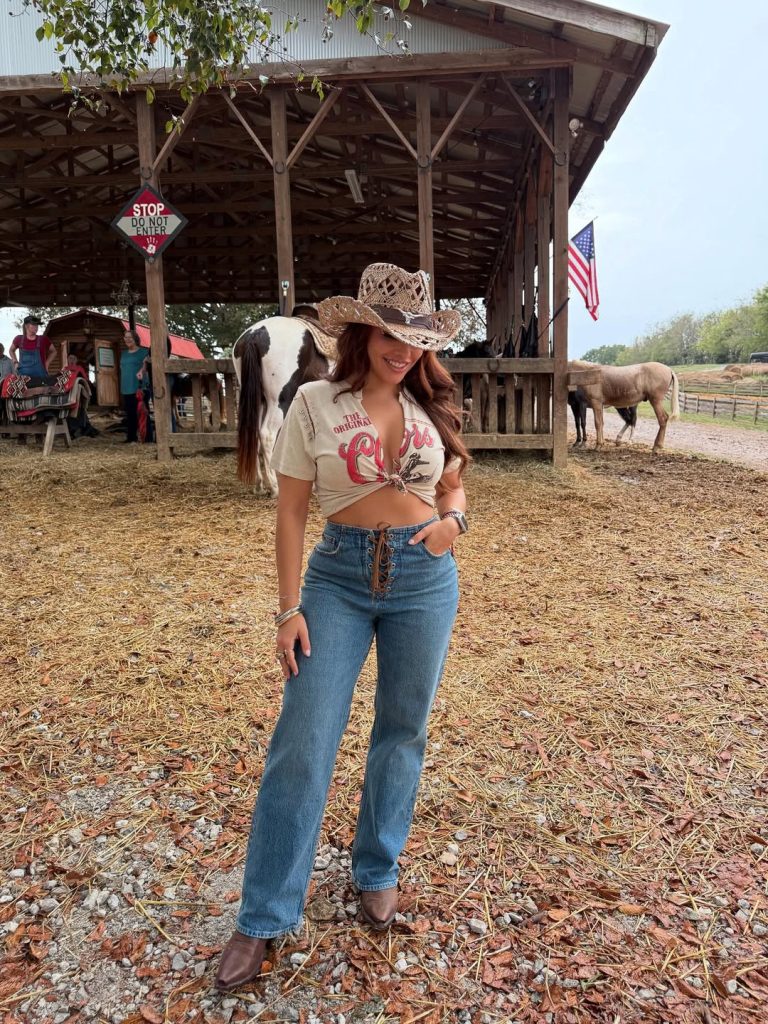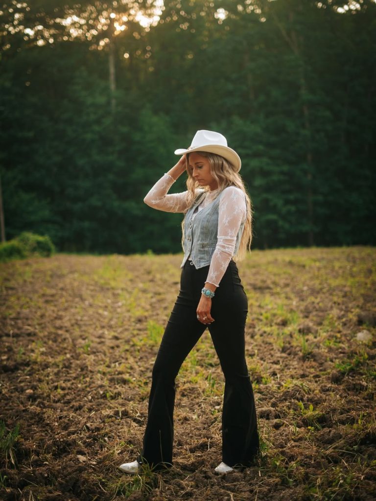 This look works beautifully for brewery rodeos, fall fairs, and casual barn dates—anywhere a little nostalgia fits in. You could add a denim jacket on cooler days or tuck a bandana into the belt loop for color. I’d steer clear of ultra-sleek heels or glossy purses; leaning into rugged textures keeps this cowgirl look grounded and genuinely casual.