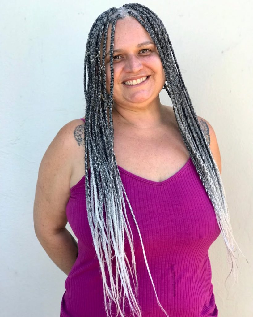 Long Silver Ombre Box Braids With Confident Minimalism