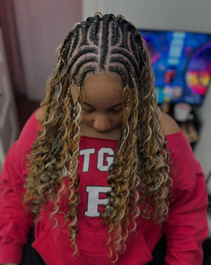 Cornrow-Feed Braids with Loose Curls