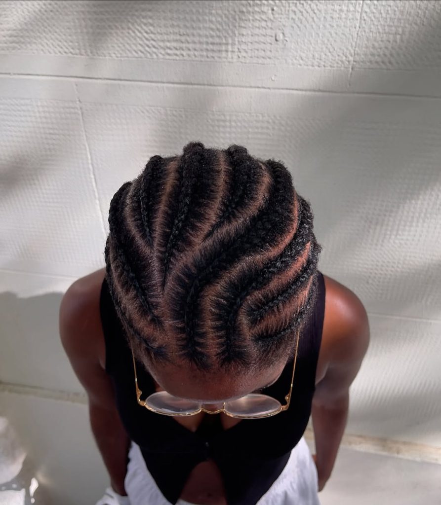 Curved Cornrow Pattern With Clean, Minimalist Finish