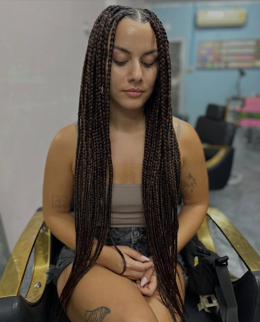 Length remains timeless, and these long box braids with a clean center part prove why. Falling well past the chest, they create an elegant vertical line that elongates the silhouette. This is a favorite among women who enjoy versatile styling—wearing braids down during the day and pulling them into low ponytails or buns in the evening. In 2026, long box braids continue to symbolize confidence and effortless glamour.