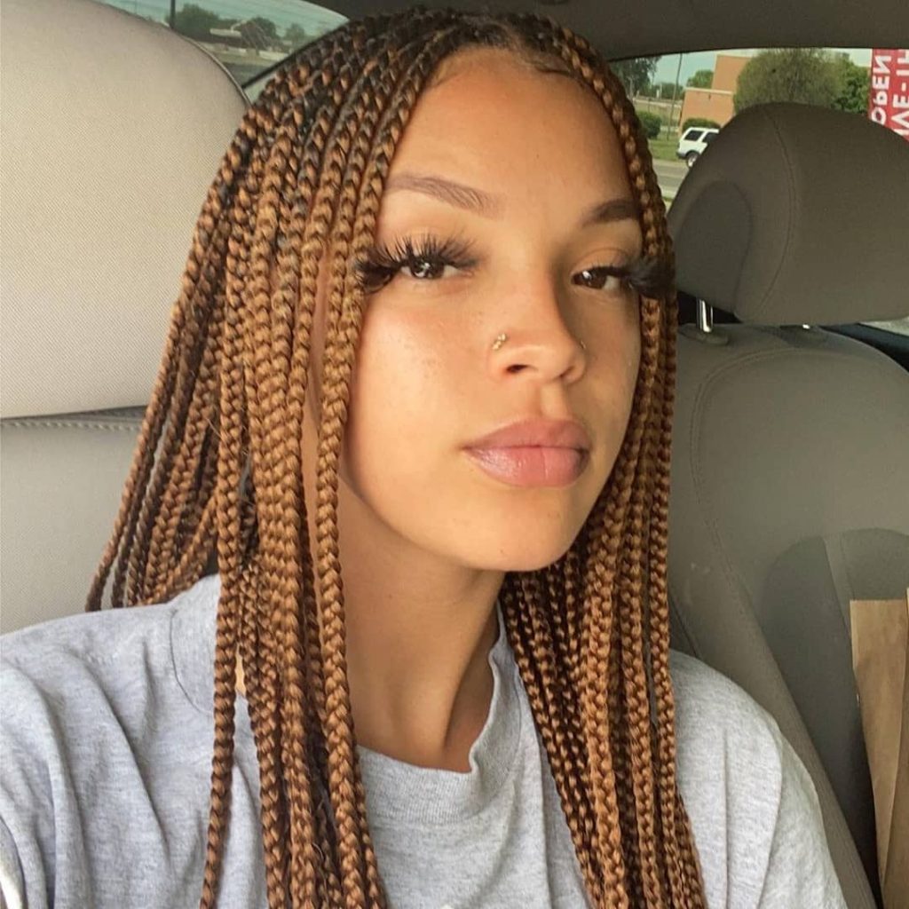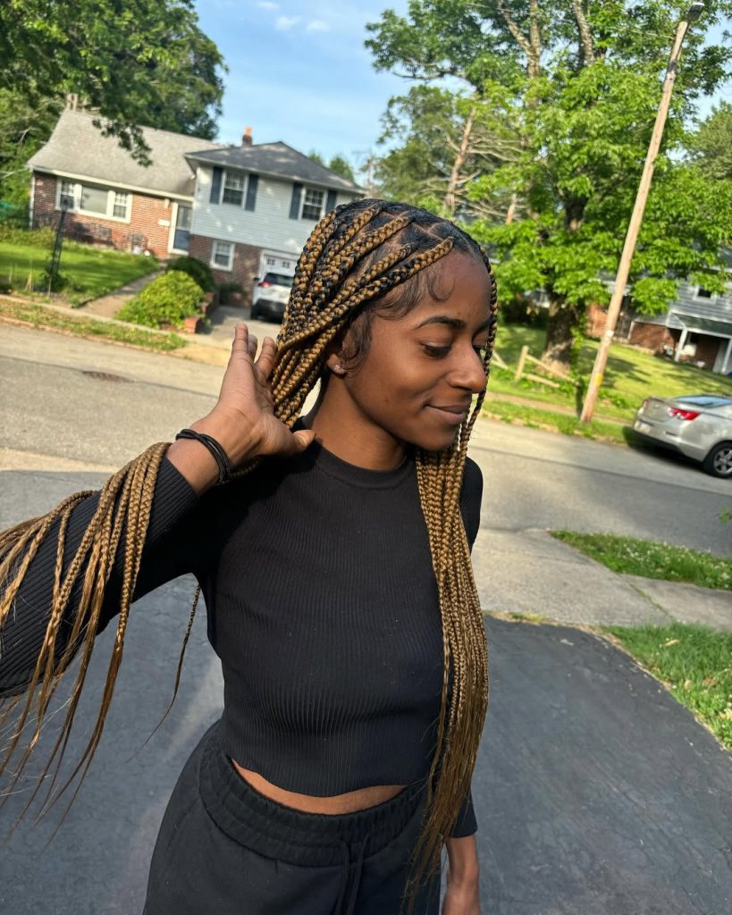 Honey-Blonde Knotless Box Braids—Shoulder-Grazing Length