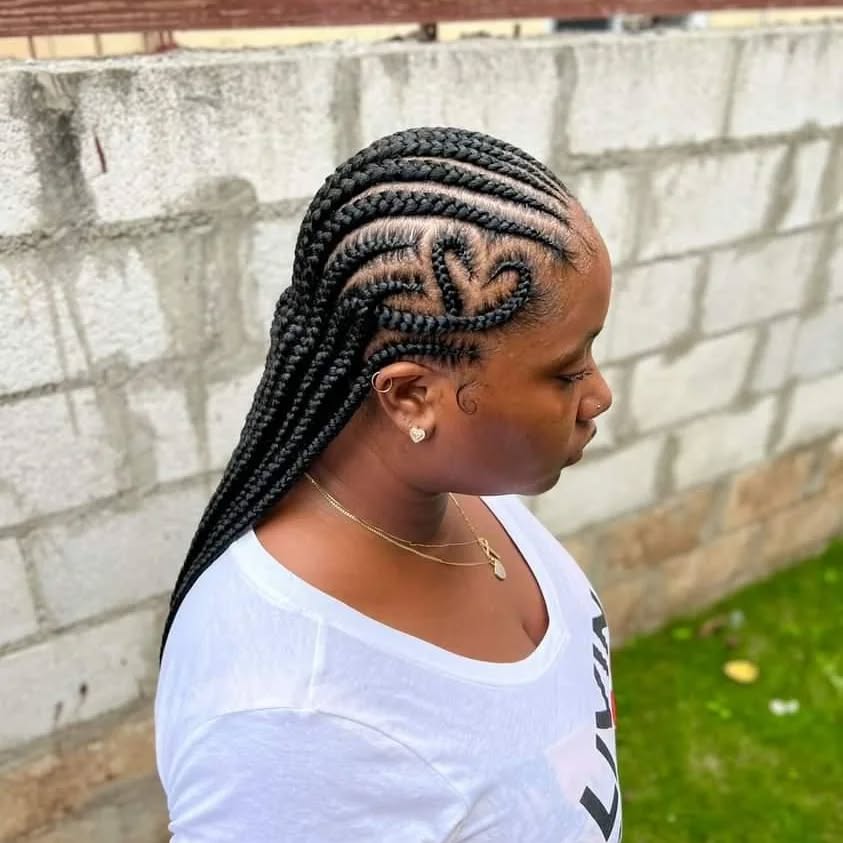 A heart motif is etched into the side with precision parting, then framed by medium feed-ins that flow into neat, waist-skimming tails. It’s playful but grown—perfect for birthdays, date nights, or anytime you want compliments from strangers at Trader Joe’s. Keep it crisp: Request knotless feeding at the hairline to reduce tension. If you frequently teach or present, this design appears friendly on camera while maintaining a professional look in real life.