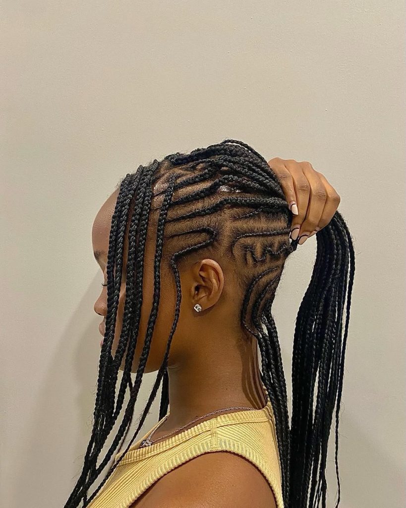 Side-Sculpted Cornrows into Extra-Long Knotless Braids