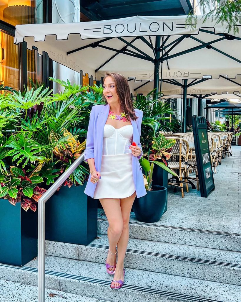 This look shines at vacation brunches, seaside hotels, or birthday catch-ups when you want summer classy energy without trying too hard. A glossy lip and loose waves keep things playful; a sleek low bun makes it instantly more chic. Skip heavy jackets or dark tights—this outfit belongs in warm light and deserves to show off those legs in 2026.