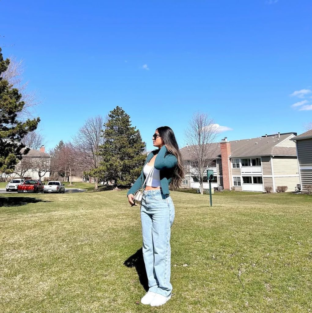 This outfit would be great for trendy dessert spots, girls’ birthday occasions, and even drag brunch because of its playful, dramatic touch. The outfit can be personalized with a red lip and pearl clips in the hair. There would be no need for bulky outerwear, and a cropped cardigan would suffice in keeping the classy theme intact and focusing the attention on the rosette.